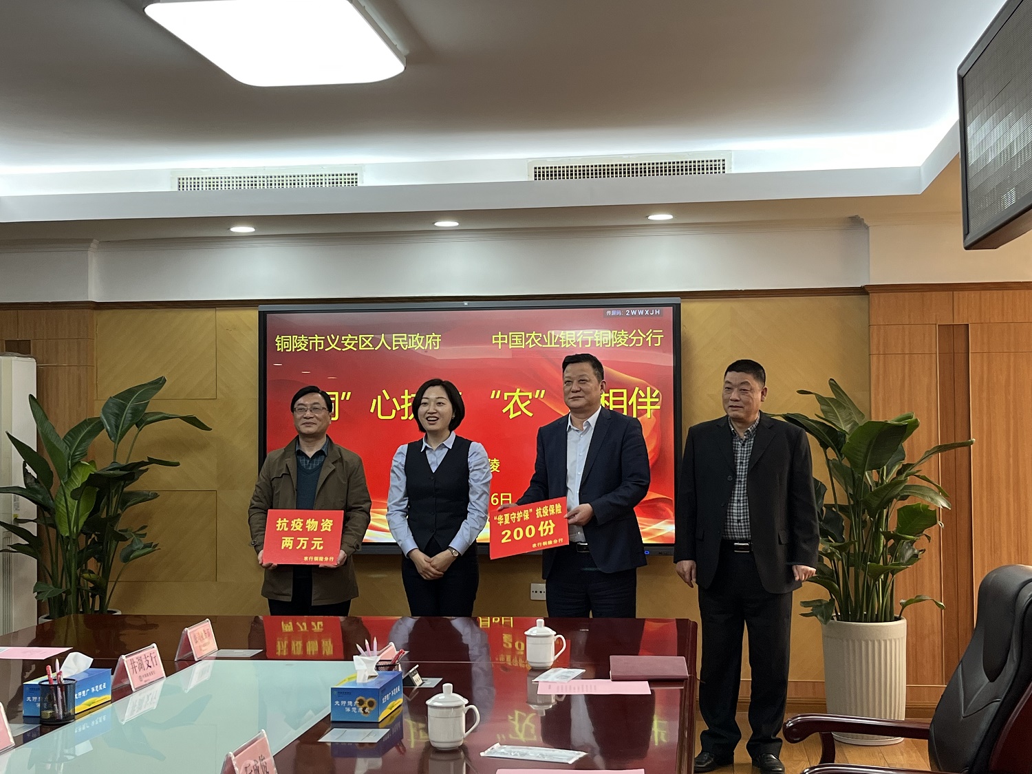 隨后,中國農(nóng)業(yè)銀行銅陵分行黨委書記、行長黃曉蘭攜領導班子成員,感謝義安區(qū)政府對該行抗疫行動的肯定與鼓勵,并表示會以實際行動為義安區(qū)抗疫工作提供有力的金融支持。