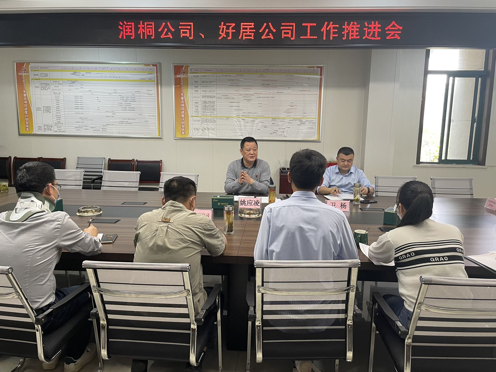 4月11日上午,潤桐公司、好居公司工作推進會于集團三樓會議室召開,會議由集團董事長姚應凌主持,集團公司副總經(jīng)理衛(wèi)楊,集團財務部、綜合部、項目部相關(guān)工作人員,潤桐公司、好居公司全體成員參會。