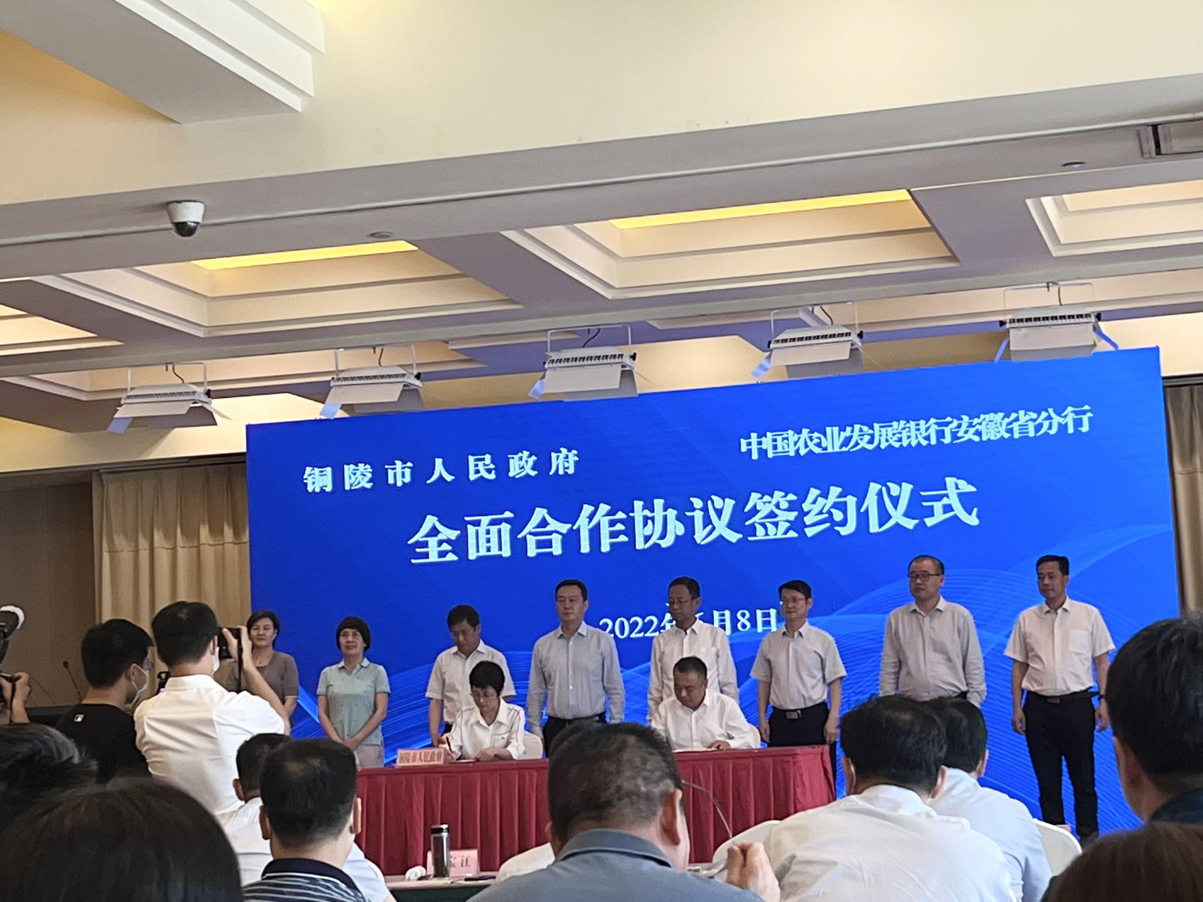 6月8日下午,銅陵市人民政府與中國(guó)農(nóng)業(yè)發(fā)展銀行安徽省分行舉行全面合作協(xié)議簽約儀式,搭建“政、銀、企”連接平臺(tái),進(jìn)一步促進(jìn)政策性金融更好地服務(wù)區(qū)域經(jīng)濟(jì)發(fā)展。集團(tuán)副總經(jīng)理阮成俊攜計(jì)劃財(cái)務(wù)融資管理部參加。