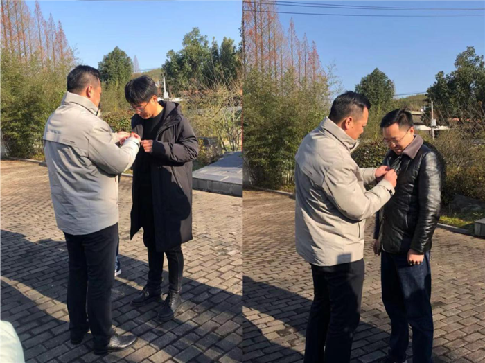 集團(tuán)黨委書記姚應(yīng)凌同志為兩位新黨員佩戴黨徽。小小的紅色徽章蘊(yùn)藏著今后更深更大的責(zé)任。