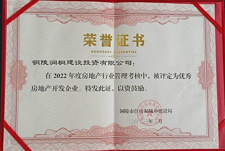 銅陵潤(rùn)桐建設(shè)投資有限公司——2022年度優(yōu)秀房地產(chǎn)開發(fā)企業(yè)