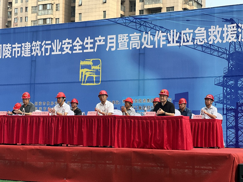 6月21日下午,由市住建局主辦的“銅陵市2023年建筑工程“安全生產(chǎn)月”暨建筑工程高處作業(yè)應(yīng)急救援演練”活動(dòng)在水木清華項(xiàng)目施工現(xiàn)場(chǎng)開(kāi)幕。市住建局、市應(yīng)急管理局、耀安集團(tuán)等單位出席演練活動(dòng)。