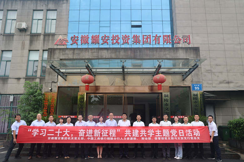 為實現(xiàn)黨組織之間優(yōu)勢互補,黨建促進業(yè)務,充分發(fā)揮支行黨組織和廣大黨員推動發(fā)展、凝聚人心、促進和諧的作用,努力構(gòu)建“資源共享、優(yōu)勢互補、互相促進、共同提高”的黨建工作新格局,安徽耀安集團機關(guān)黨支部、銅陵市義安區(qū)融資擔保中心黨支部與中國工商銀行銅陵分行人力資源部黨支部、財務會計部黨支部、信貸與投資管理部黨支部、義安支行黨總支于2023年7月16日聯(lián)合開展““銅心”同力聚合力,攜手共建促發(fā)展”黨建共建活動。